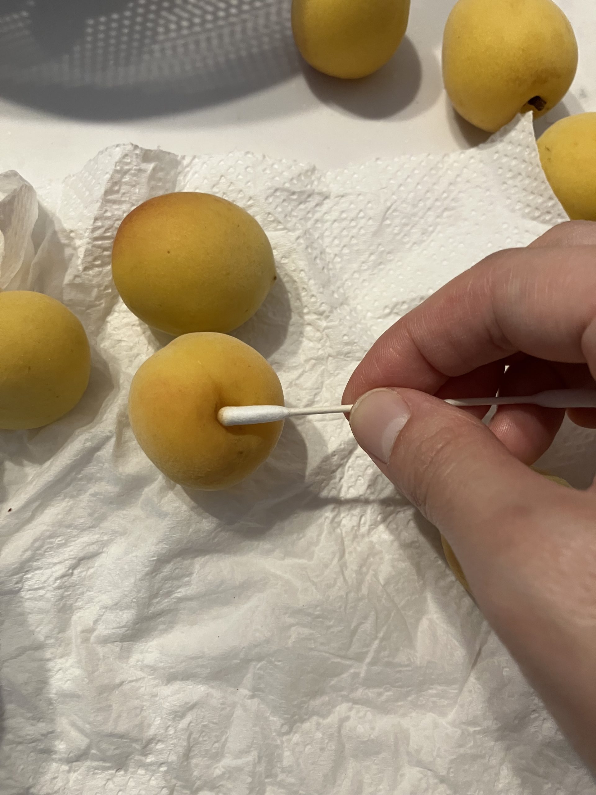 ヘタを取りヘタの部分に溜まっている水分も丁寧に拭きます